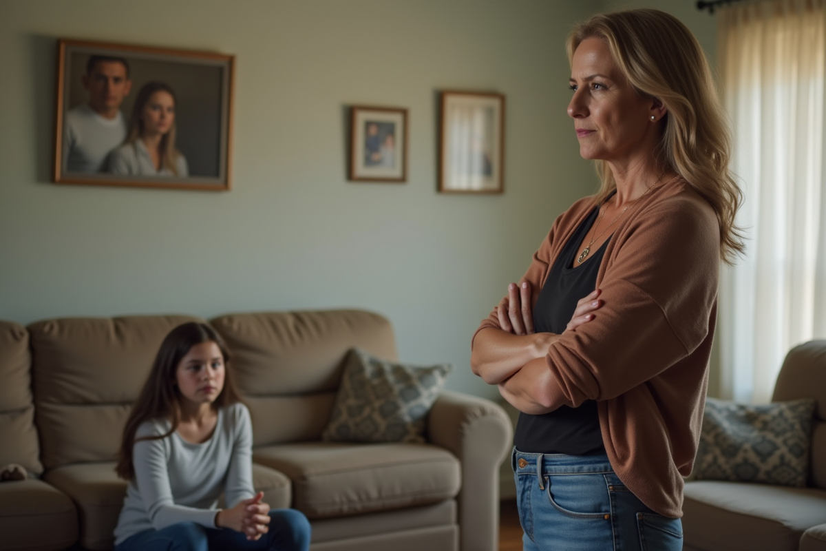 Femme autoritaire face à une adolescente dans un salon familial