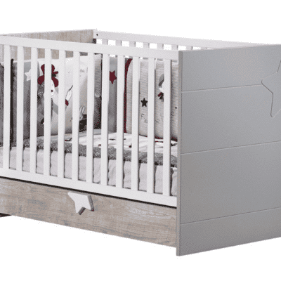 Sauthon, référence dans la literie enfantine, propose ici un lit évolutif 70 x 140 cm pensé pour durer bien au-delà de la petite enfance. Le kit de transformation est livré avec le lit. Le sommier à lattes se place sur trois niveaux en mode berceau. Seul le sommier du matelas n’est pas inclus. Trois côtés pleins percés permettent d’installer aisément un tour de lit pour plus de confort.